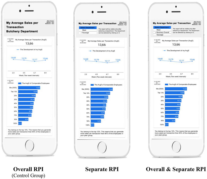 Die Kontrollgruppe erhielt dabei nur Informationen zur ihrer (relativen) Verkaufsleistung, während die anderen beiden Gruppen ausschließlich bzw. zusätzlich (relative) Informationen zu ihrer Verkaufsleistung in den Bereichen Fleisch und Wurst separat voneinander erhielten.